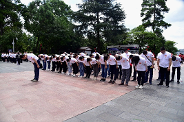 隨后,黨員一行來(lái)到紅軍山。在紀(jì)委委員、第一黨支部書(shū)記張治強(qiáng)帶領(lǐng)下,全體同志懷著崇敬肅穆的心情,圍走紅軍山烈士陵園一周,追憶紅軍舍生忘死的英雄壯舉,并在紀(jì)念碑前列隊(duì)致敬,默哀鞠躬。