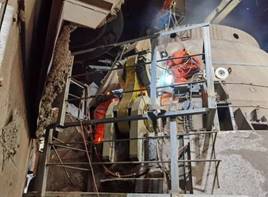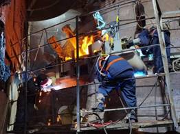 由賽迪股份總包、賽迪裝備承制的寶鋼集團(tuán)新疆八一鋼鐵有限公司“150噸轉(zhuǎn)爐懸掛改型工程”項目,需要在項目現(xiàn)場進(jìn)行焊接,承接現(xiàn)場焊接的協(xié)力公司能力有限,轉(zhuǎn)爐安裝焊接工作進(jìn)度滯后了半個月。為保工期,在集團(tuán)與公司各級領(lǐng)導(dǎo)的指導(dǎo)與協(xié)調(diào)下,公司制造中心分別于12月16日、17日、20日,分三批緊急抽調(diào)了14名(含外包隊伍)車間工作經(jīng)驗豐富的焊接師傅,由結(jié)構(gòu)車間主任張勇帶隊趕赴現(xiàn)場支援。到現(xiàn)場后還沒來得及休整即召開緊急會議,并查看現(xiàn)場實地情況,發(fā)現(xiàn)整個爐體上段工作還未開展;下段4個爐殼吊掛座還未焊接,4個托圈吊掛座焊了2個、還有2個未開始,同時已焊接的2個托圈吊掛座全部探傷不合格、需要刨開返修,工作量較大,加上全國大范圍寒潮來襲,新疆氣溫更是低至零下15度,低溫環(huán)境中需要進(jìn)行焊條焊絲保溫、焊縫預(yù)熱等很多準(zhǔn)備工作。會后大家就立刻投入到24小時的輪番作業(yè)中。
