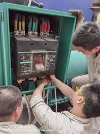 然而,我們能等,客戶不能等,8月因限電以來(lái),部分項(xiàng)目已出現(xiàn)了拖期現(xiàn)象。面對(duì)繁重的生產(chǎn)任務(wù),裝備公司各級(jí)領(lǐng)導(dǎo)可謂焦急萬(wàn)分,經(jīng)研究最終決定租賃發(fā)電機(jī)保生產(chǎn)。8月19日,緊急聯(lián)系的兩臺(tái)發(fā)電機(jī)順利到貨,設(shè)備管理室人員立即開展緊張調(diào)試工作,解燃眉之急。當(dāng)天氣溫高達(dá)43℃,要完成接線,設(shè)備管理室人員需先斷開市政電源,在沒有空調(diào)風(fēng)扇、封閉的設(shè)備操作間內(nèi)頂著高溫調(diào)試。在非常人能忍受的高溫之下,他們從19日早上一直工作到20日凌晨,終于確保了20日按時(shí)恢復(fù)生產(chǎn)供電,生產(chǎn)系統(tǒng)正式復(fù)工復(fù)產(chǎn)。