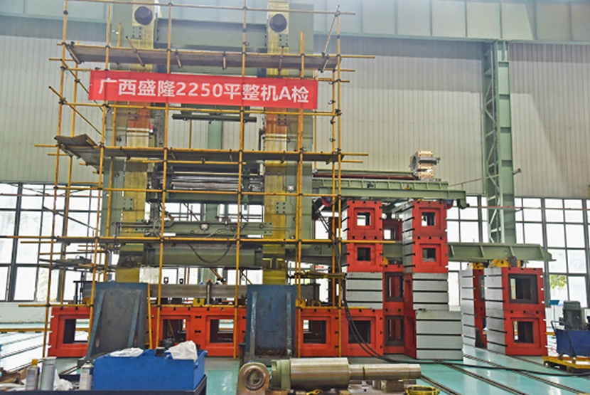 由賽迪裝備負(fù)責(zé)成套供貨的廣西盛隆2250平整機(jī)總重量達(dá)312噸,高7.5米、寬3.5米,最大軋制力為18000KN。該設(shè)備精度要求高,其中機(jī)架垂直度小于0.05mm/m,水平度小于0.05mm/m,機(jī)架間的水平度小于0.05mm/m,用于厚度為1.2mm-6.35mm,寬度為900mm-2130mm帶鋼的平整和分卷。