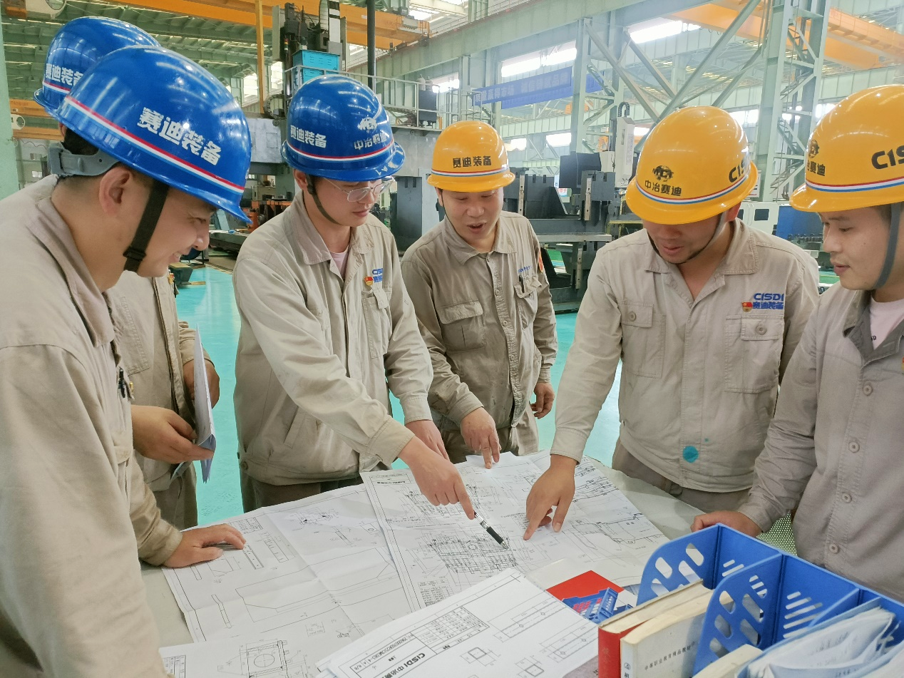六安、盛隆連鑄項(xiàng)目黨員突擊隊(duì)由第三黨支部副書記、總裝車間主任廖靖擔(dān)任隊(duì)長,組員涵蓋設(shè)計(jì)、工藝、鉚焊、機(jī)加、裝配等專業(yè)。他們在做好本質(zhì)工作的前提下,積極引導(dǎo)本部門員工響應(yīng)公司號召,突顯攻堅(jiān)克難精神。面對疫情所帶來的原材料回貨延期、多項(xiàng)目并行導(dǎo)致的工期緊張等方面的困難,突擊隊(duì)提前謀劃、統(tǒng)籌安排,有條不紊完成了前期的設(shè)計(jì)和工藝編排;生產(chǎn)攻堅(jiān)期間恰逢端午節(jié),團(tuán)隊(duì)放棄休假奮戰(zhàn)在各條戰(zhàn)線上,積極推進(jìn)督促、充分溝通協(xié)調(diào)、加緊生產(chǎn)制造,各項(xiàng)工作有條不紊推進(jìn)。