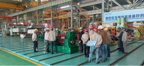 2023年3月14日,臺灣燁興線棒復(fù)合線改造項(xiàng)目業(yè)主就中冶賽迪裝備設(shè)備成套的NHCD系列高剛度短應(yīng)力線軋機(jī)、FHSCD系列飛剪、夾送輥、SRSCD系列高速線材減定徑機(jī)組等核心設(shè)備進(jìn)行A檢。通過過程材料檢查、數(shù)據(jù)測量、模擬試車等一系列環(huán)節(jié),各項(xiàng)指標(biāo)均符合設(shè)計(jì)要求,A檢順利通過。其中精軋區(qū)核心裝備之一的減徑機(jī)測試速度達(dá)117m/s,最大振動值2.6mm/s,達(dá)到國際先進(jìn)水平。