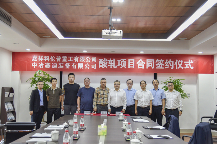 2023年10月18日,賽迪裝備與嘉祥科倫普重工有限公司在江津舉行1380mm六機架六輥酸洗軋機聯(lián)合機組機電液成套項目合同簽約儀式,并于19日在賽迪大廈舉行了項目開球會。