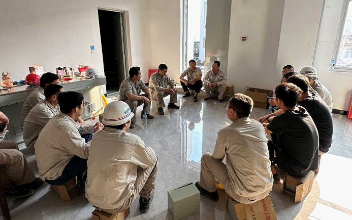 每日晨會(huì)在簡(jiǎn)陋的辦公室定時(shí)召開(kāi)。常務(wù)項(xiàng)目副經(jīng)理、黨員董立蘇逐個(gè)落實(shí)重點(diǎn)事項(xiàng),對(duì)每日繁雜的工作任務(wù)進(jìn)行簡(jiǎn)單梳理,確保急難險(xiǎn)重問(wèn)題能快速解決。