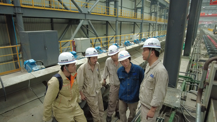 而同樣在現(xiàn)場(chǎng)不停奔走的還有產(chǎn)品設(shè)計(jì)研究院張程霖、周德洪、程江、張子念和軋鋼與裝備事業(yè)部夏棋、高陽(yáng)等人。為做好技術(shù)指導(dǎo),他們每天背著電腦在設(shè)備間來(lái)回穿梭,黨員張程霖說(shuō):“只有在現(xiàn)場(chǎng),心才踏實(shí)。”而正是這樣的奉獻(xiàn)精神,因本次項(xiàng)目服務(wù),耽誤了孩子轉(zhuǎn)學(xué)手續(xù)的辦理。預(yù)備黨員周德洪作為本條生產(chǎn)線(xiàn)的總設(shè)計(jì)師,更是事事靠前,既當(dāng)技術(shù)指導(dǎo)又干鉗工安裝。縱使他已算是公司頗有經(jīng)驗(yàn)的“老手”卻也隨時(shí)帶著筆記本,仔細(xì)收集各項(xiàng)數(shù)據(jù),整理每項(xiàng)技術(shù)問(wèn)題,為后續(xù)設(shè)計(jì)優(yōu)化積累經(jīng)驗(yàn)。